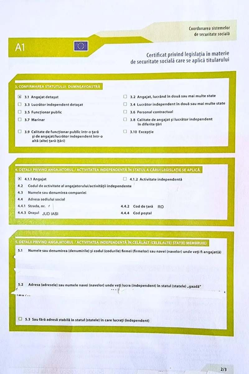 Este un document oficial emis de CNPP care dovedește că ești asigurat în România în timp ce lucrezi temporar într-o altă țară din UE.